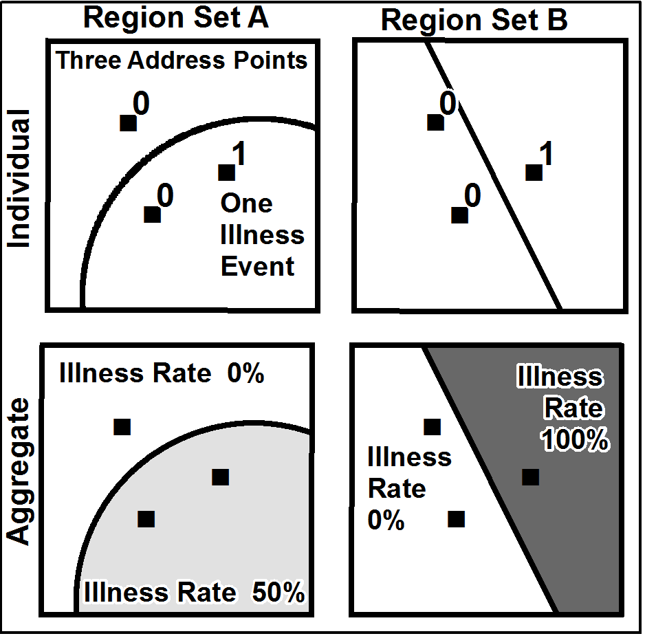For example, calculating the average income of a population using census tracts may yield different patterns than calculating the same average using counties even if both are using the same underlying household-level data (scale effect). A common example of the zone effect is redistricting, where voting districts are redrawn, often in response to population changes, but where different ways of grouping the same population can significantly alter political outcomes.