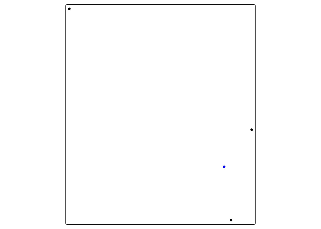 tm_shape(chhs_neighbors) + tm_dots() + tm_shape(chhs) + tm_dots(fill = "blue")