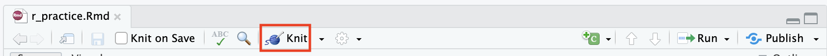 Knitting a .Rmd means that you create a rendered .html including your code, output, and text. To knit your document, click the knit button. It will create a .html in whatever folder you have the .Rmd saved in (hopefully your GEOG391 folder!)