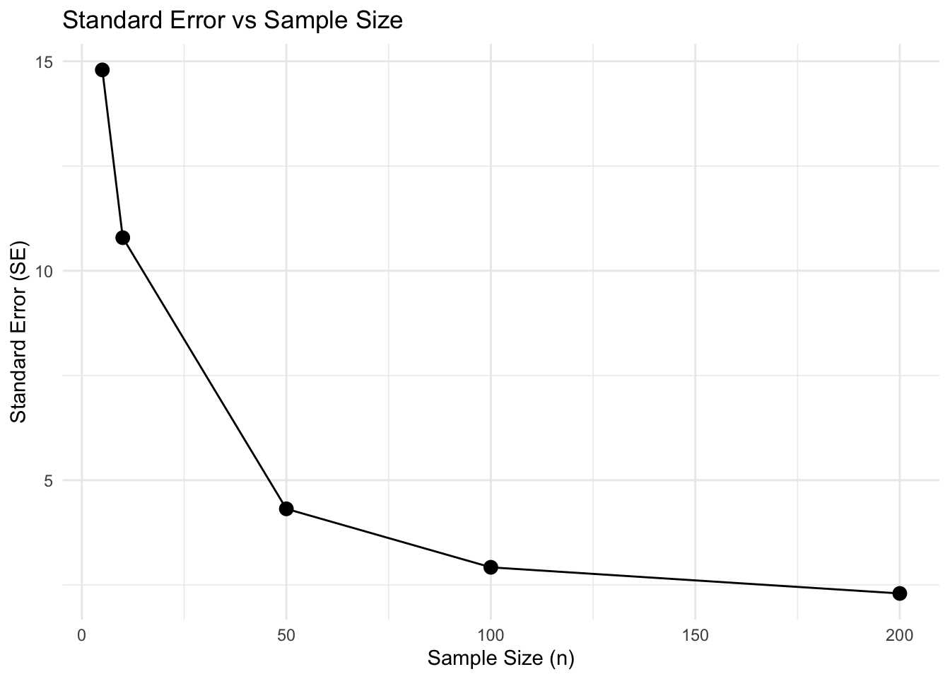labs(title = "Standard Error vs Sample Size",