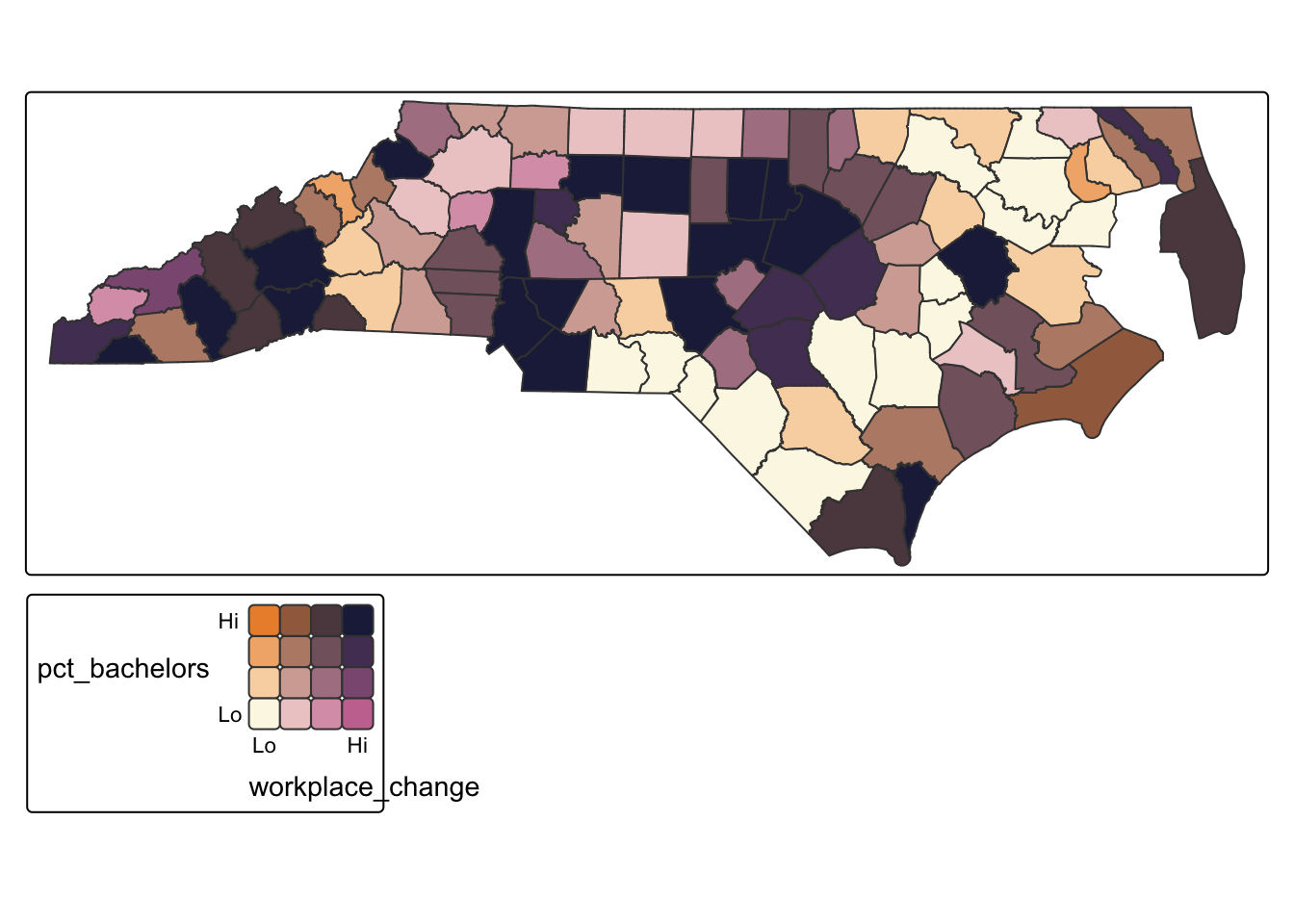 tm_polygons(fill = tm_vars(c("pct_bachelors", "workplace_change"), multivariate = TRUE),
