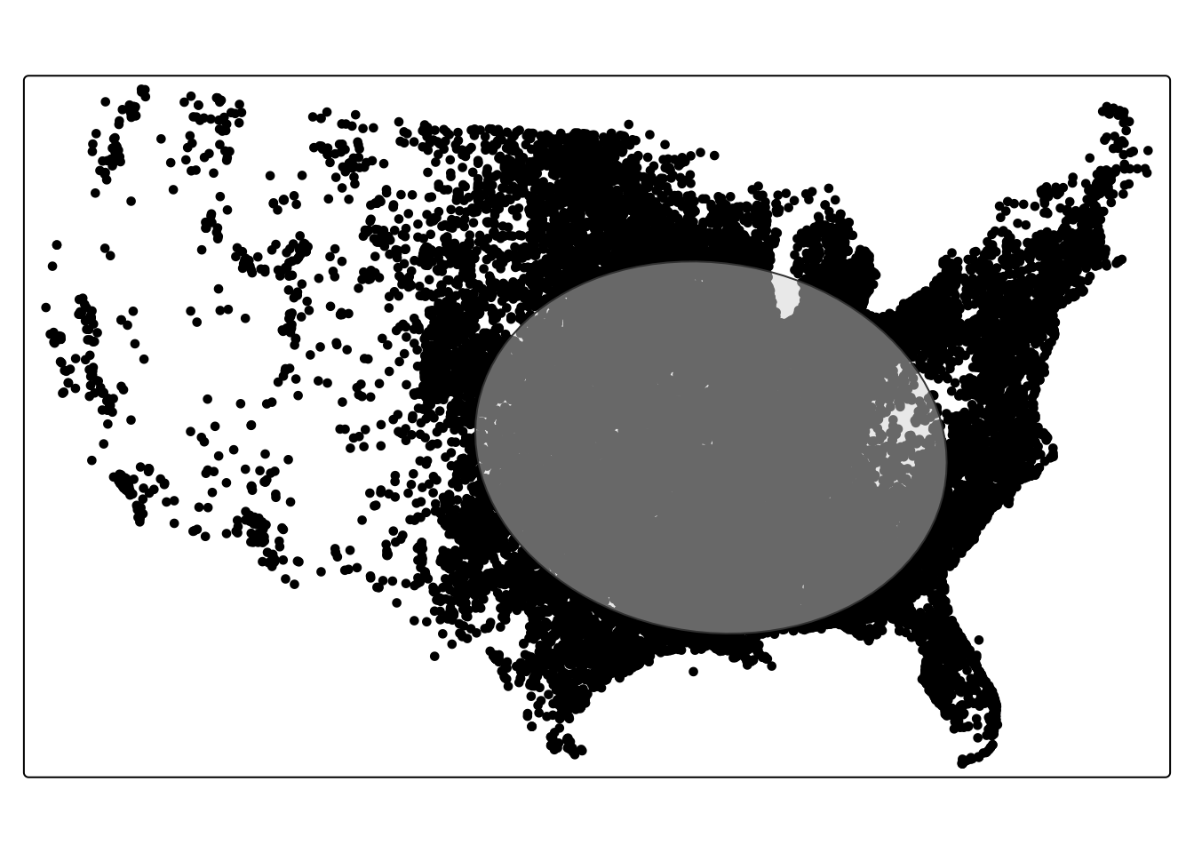 We can make a very basic map of tornado locations using the following command: