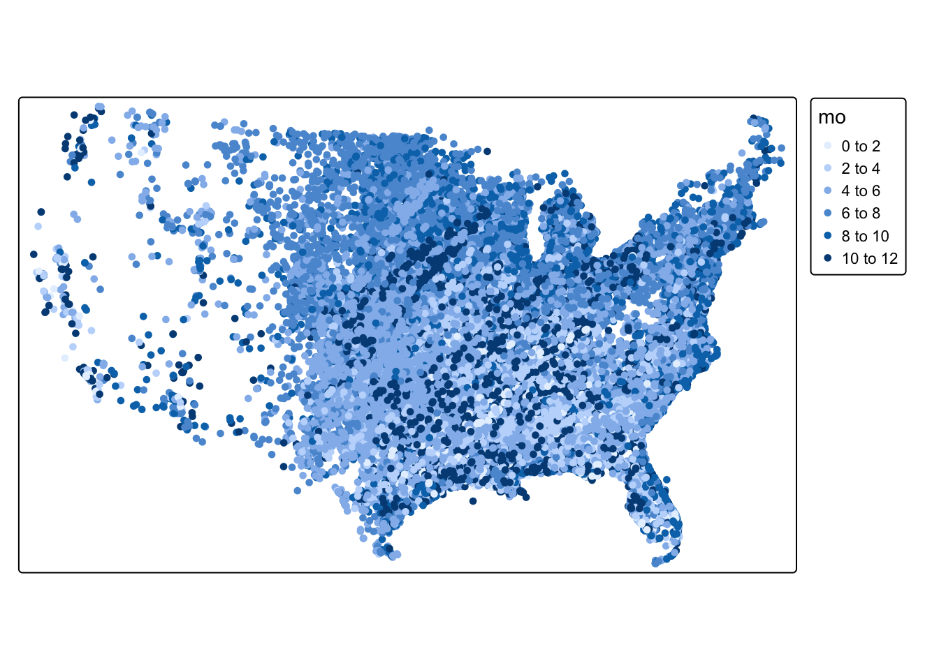 tm_shape(torn) + tm_dots(fill = "mo")