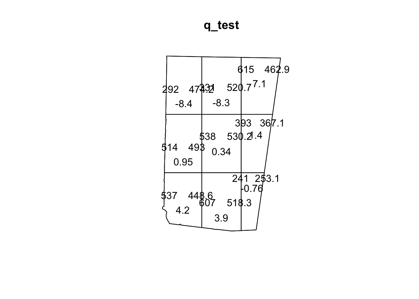 Q2: Based on the residuals, which quadrats differ the most from expected values. What does this tell us about the spatial pattern?